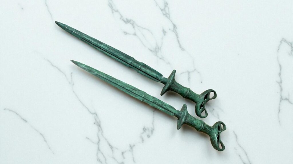 中国古玩 青銅剣 2点 双剣 約50cm 古美術 骨董品 中国美術 を出張買取